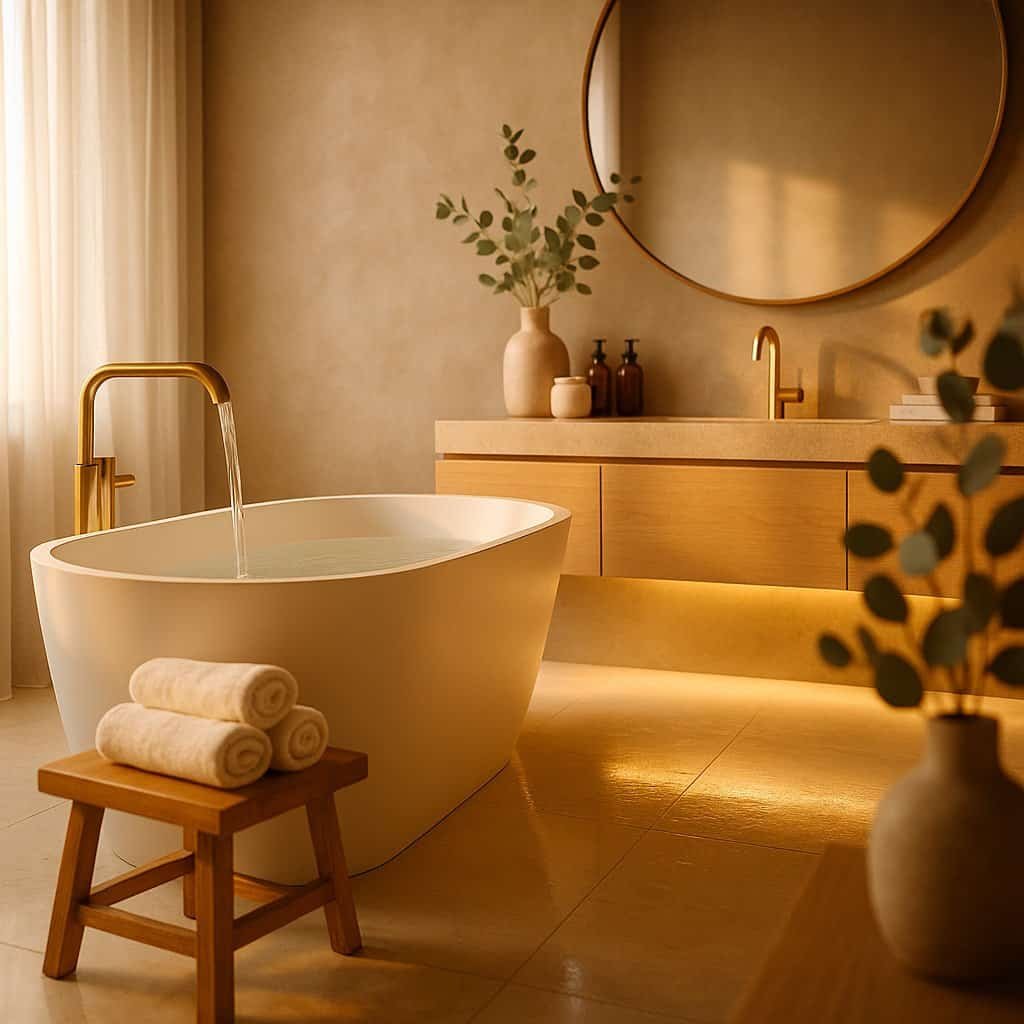 Spa-style designs, calming neutral tones, and simple upgrades for luxurious feel.