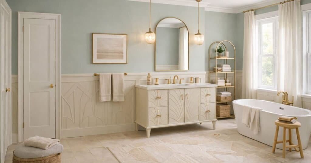 The trap is using one flat color everywhere, then wondering why the room feels dull or cold. Bathrooms need a little contrast, even in calm palettes.