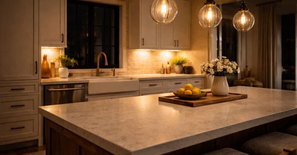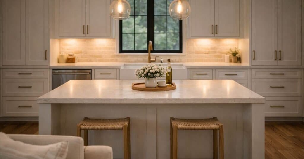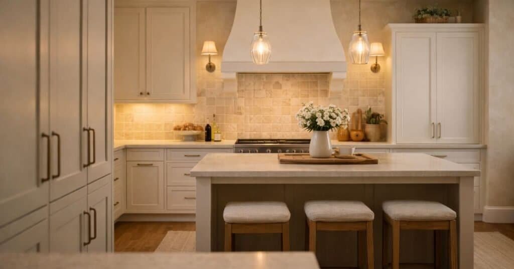 If your kitchen feels like a workbench after dark, the lighting is the reason. Warm bulbs plus layered light changes everything.
