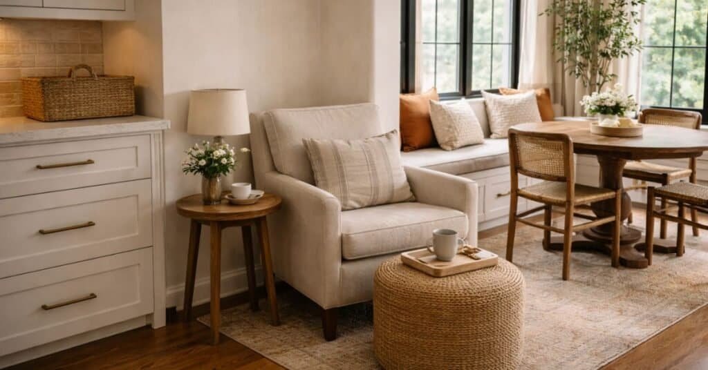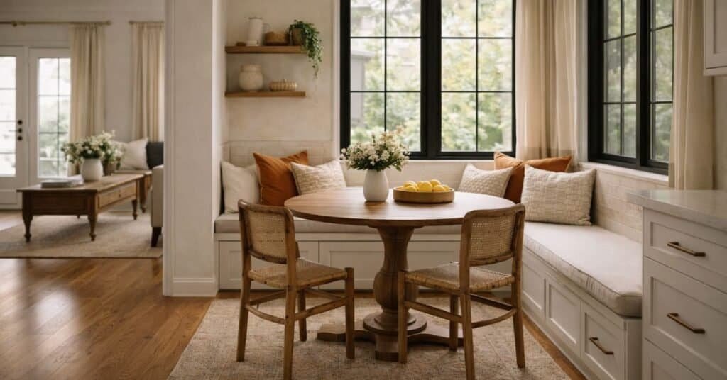 HGTV style inspiration often uses a small nook or bench to add comfort. A small nook or bench can boost the cozy factor.