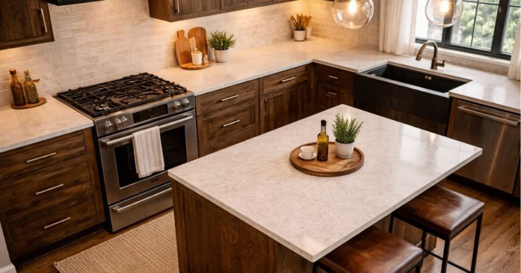A kitchen can be spotless and still feel a little cold. The lights are bright but not warm. The corners feel empty. The room looks fine, yet it does not pull you in.