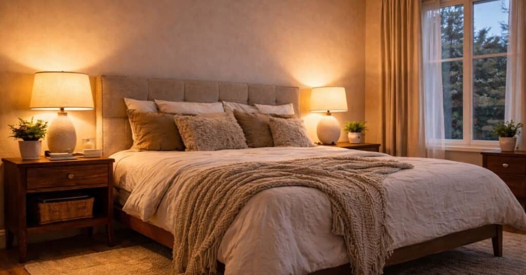 A common mistake is using bright cool bulbs because they look “clean.” In bedrooms, that light can feel harsh once the sun goes down.
