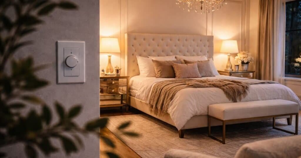 A bedroom needs different light at different times. Bright for folding laundry. Soft for winding down. Dimmers and smart bulbs let you change the mood without changing fixtures.