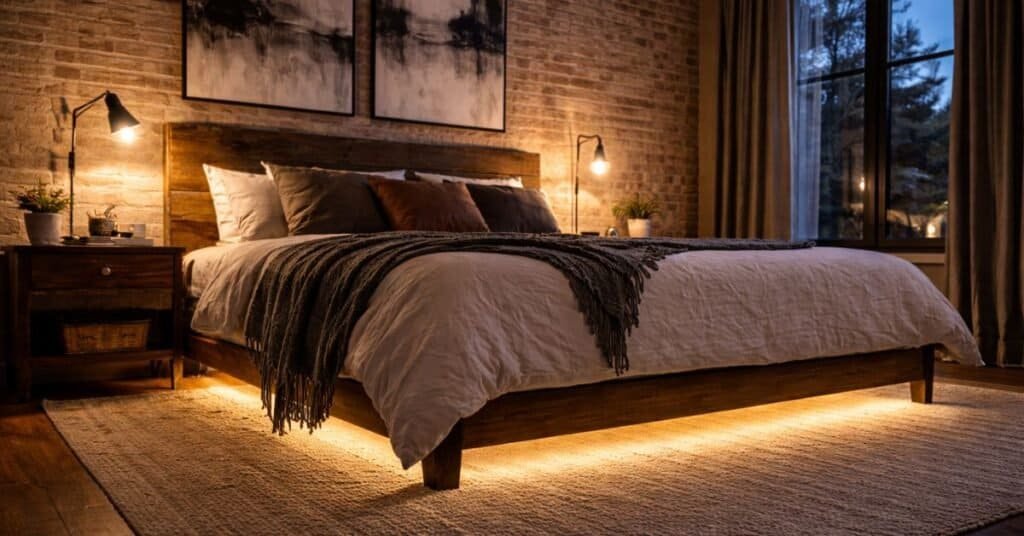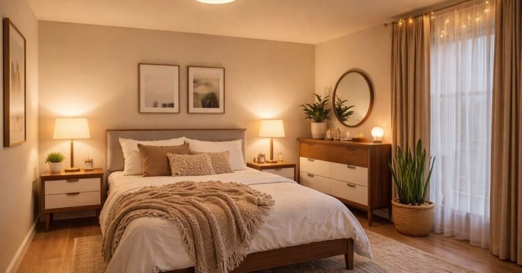 Small space variation: if your bedroom is tight, use one bedside lamp plus one hidden LED strip under the bed to soften the floor and edges.