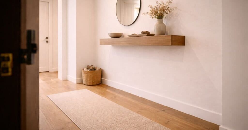 A narrow entrance feels tight when movement is blocked. The goal here is not to add more. It is to let the space breathe while still handling daily needs. These narrow entryway ideas focus on flow first, then light styling.