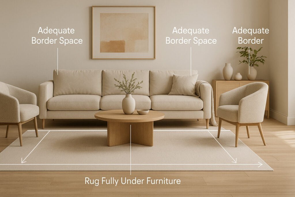 A small shift in placement can open the room. Pulling the sofa slightly forward, angling a chair, or adjusting the coffee table can make movement smoother and the room more balanced.